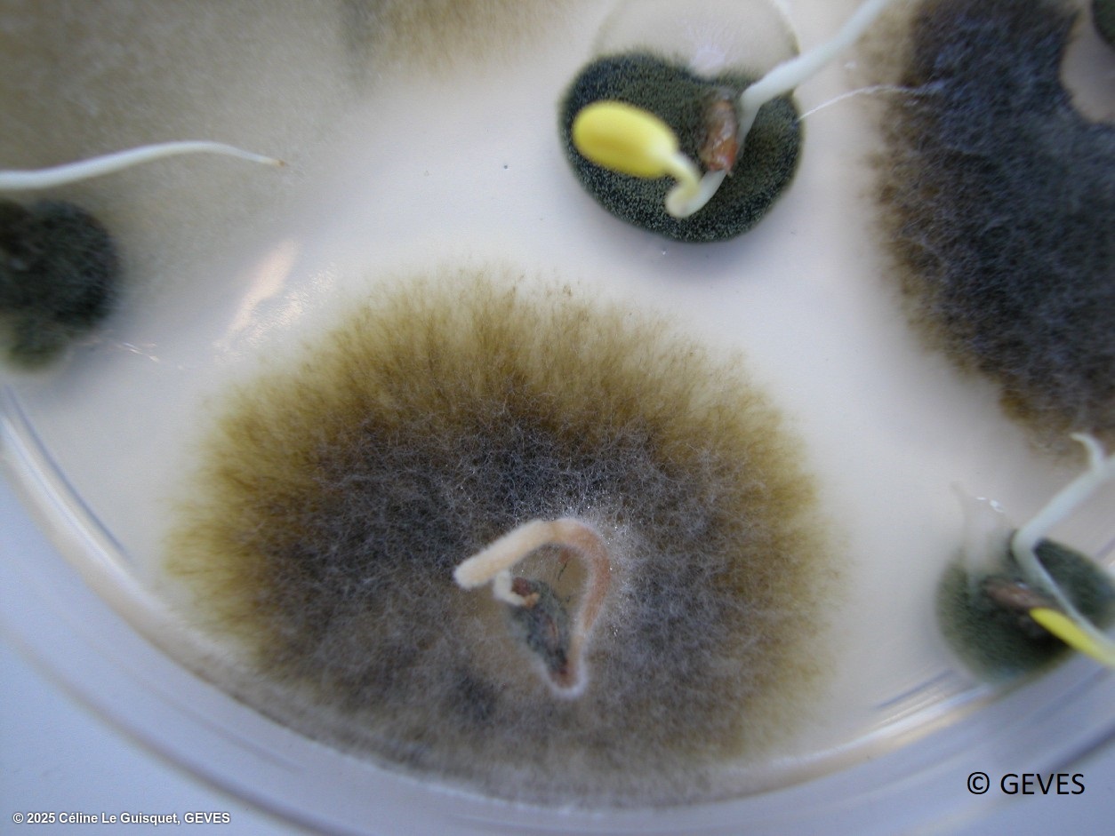 sowing on parboiled soil covered with vermiculite, addition of 1L of water with fungicide