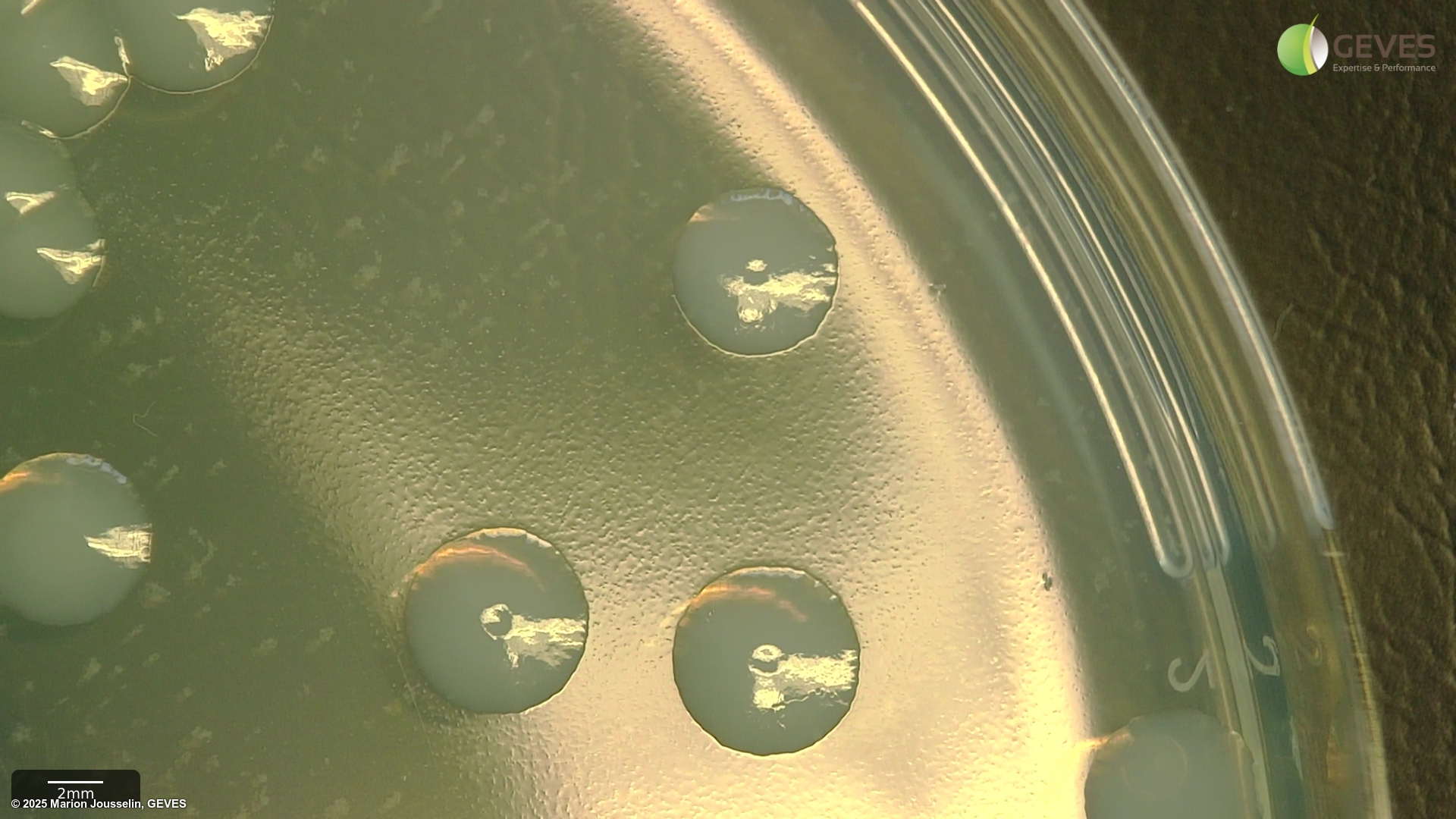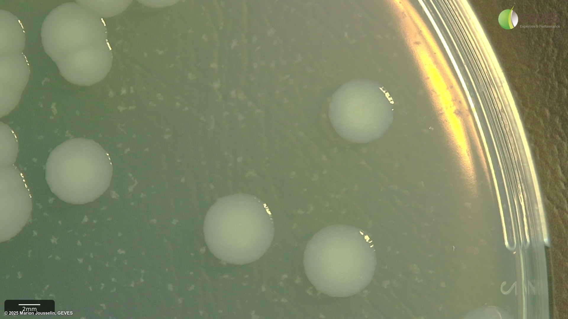 Colonies of Pseudomonas savastanoi pv. phaseolicola (KBCA plates)