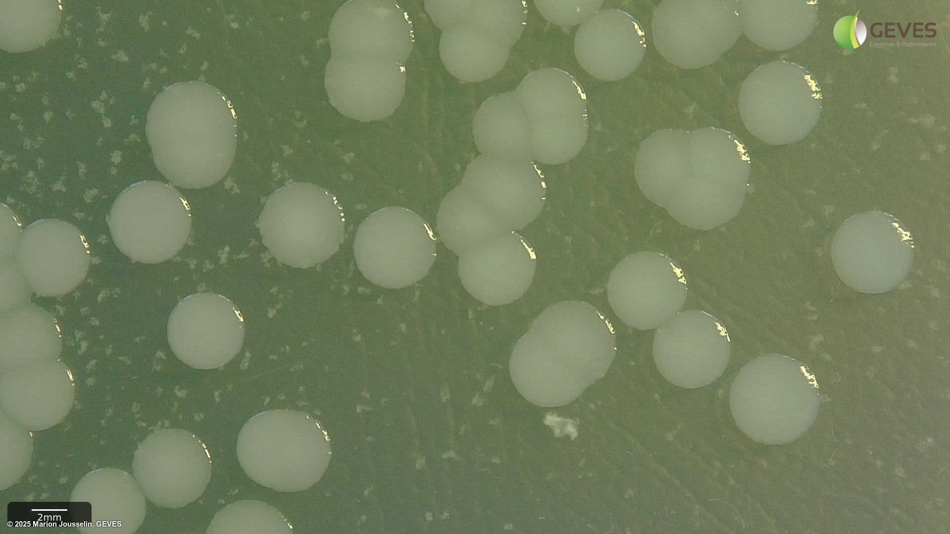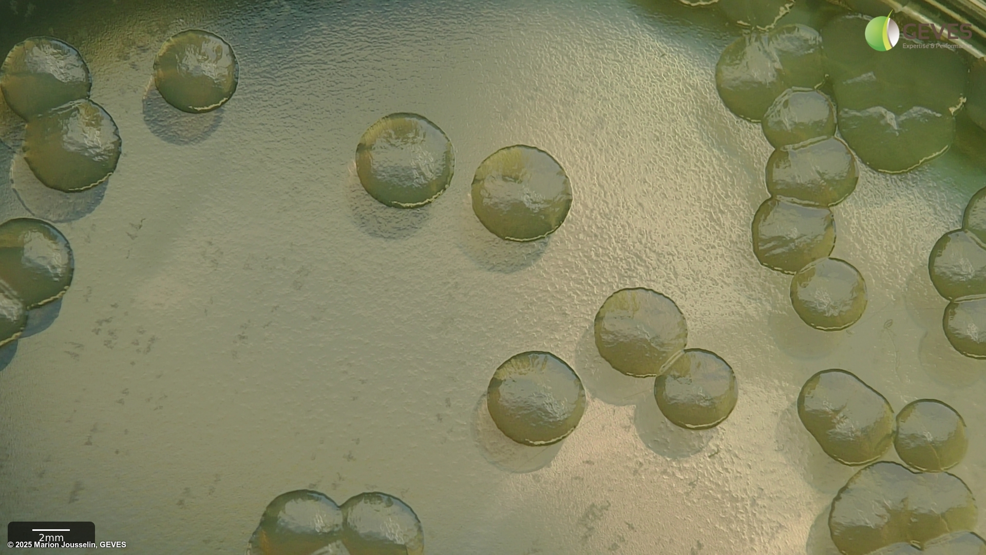 Colonies of Pseudomonas syringae pv. syringae (KBCA plates)