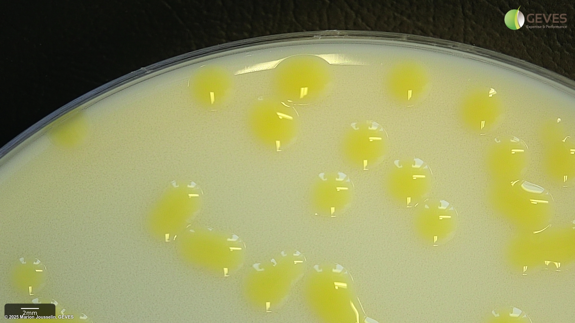 Colonies of Xanthomonas citri pv. glycines (YDC plates)