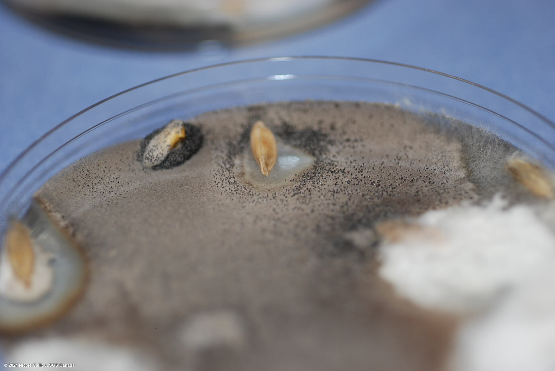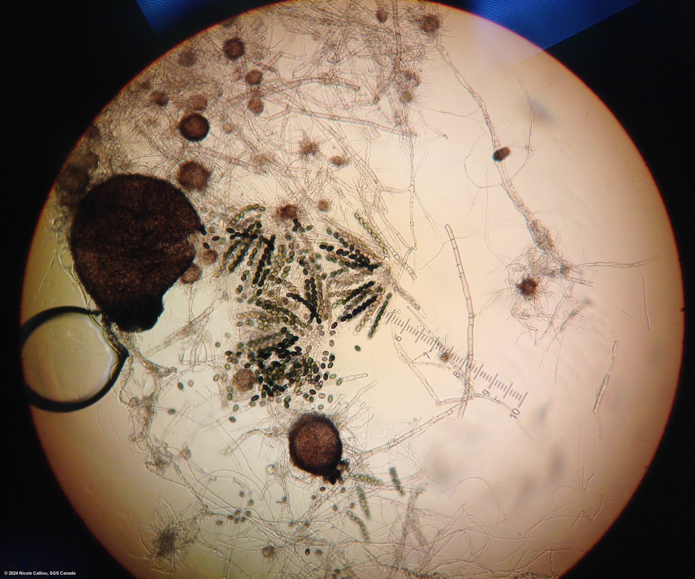 Fast growing fungus that produces black perithecia, containing asci with eight dark ascospores in a linear arrangement.