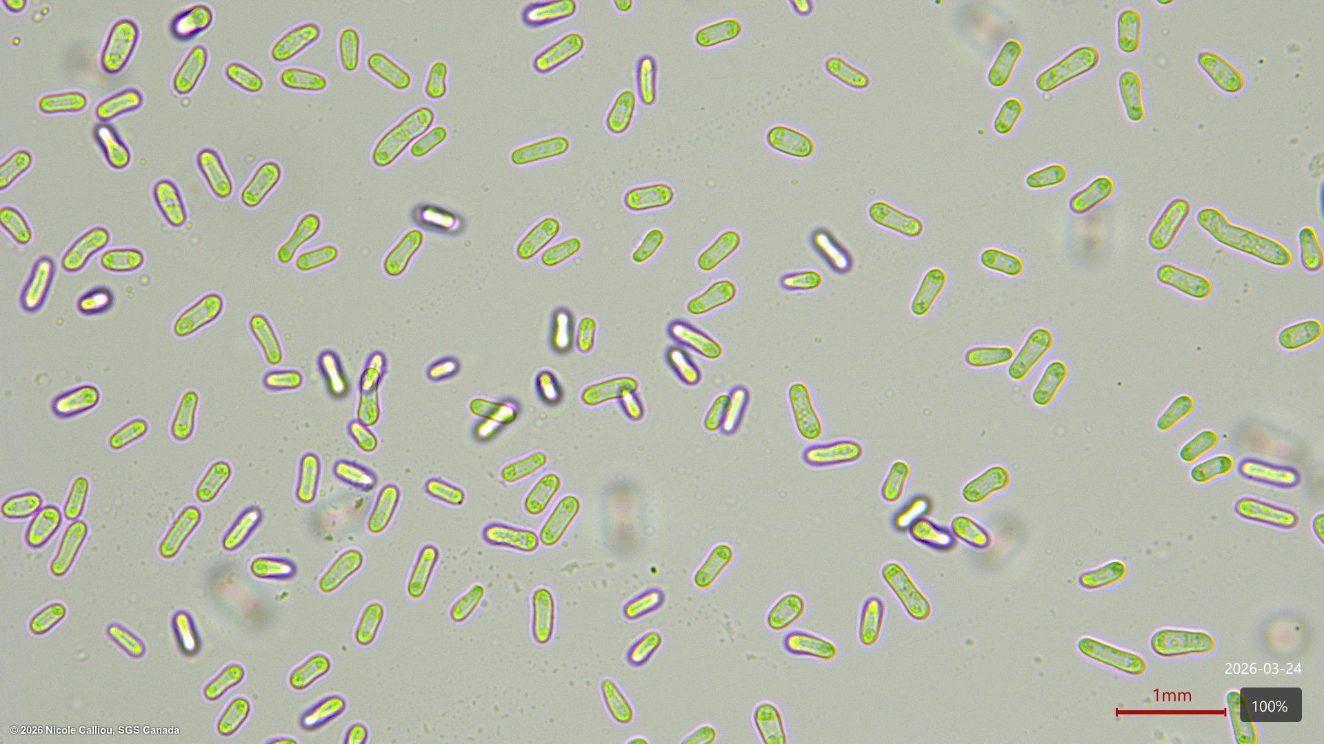 Pycnidiospores hyaline, straight or slightly curved, (0–) 1 septate, some unicellular, slightly or not constricted at the septum, rounded at each end, 10–16 × 3–5 μm [3], 8.2-10 x 4.2-4.5 μm [5] formed from hyaline ampulliform phialides.